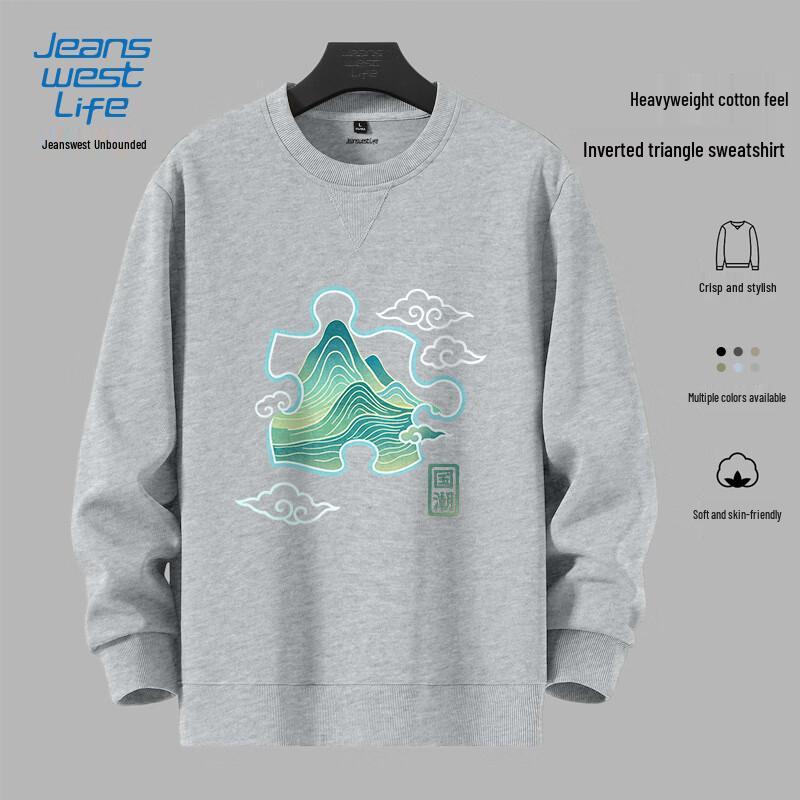 JEANSWEST LIFE Men's Guochao Colorblock Crewneck Sweatshirt