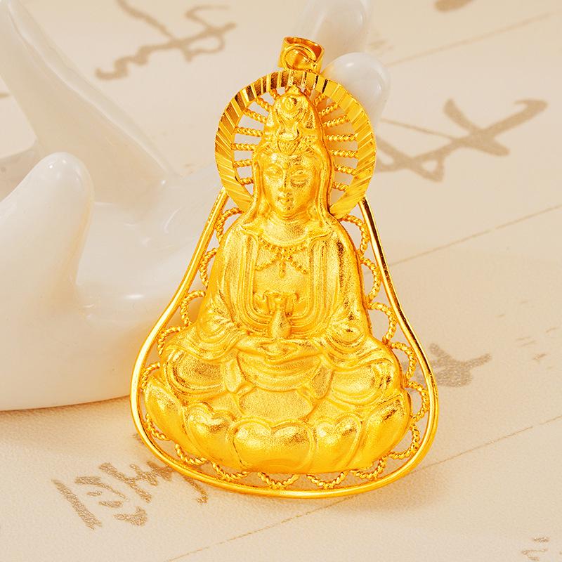Women's Gold Guanyin Pendant: Ethnic Style Good Luck Bodhisattva Amulet.