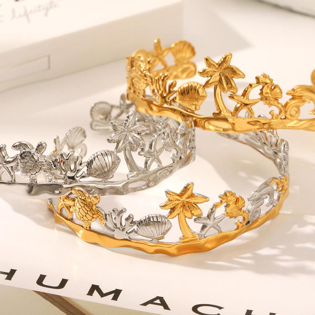 Hawaiian Stainless Steel Bracelet: Starfish, Turtle, Dolphin & Coconut Tree Charm Jewelry for Women