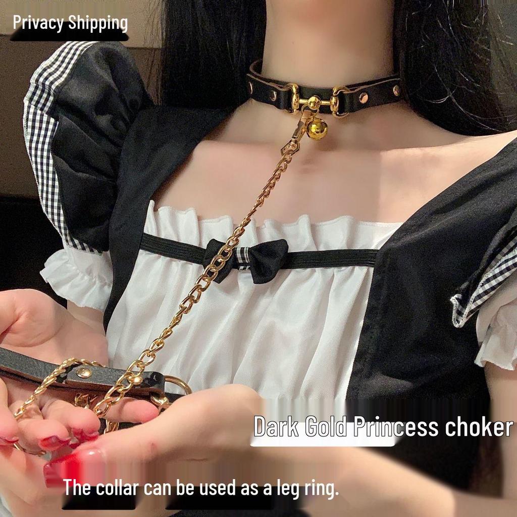 Adjustable Dark Gold Punk Leather Choker Clavicle Chain for Adult Cosplay