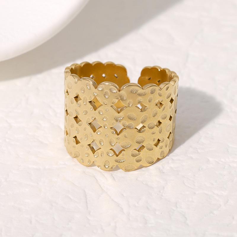 18k Gold Adjustable Wide Band Stainless Steel Ring for Women