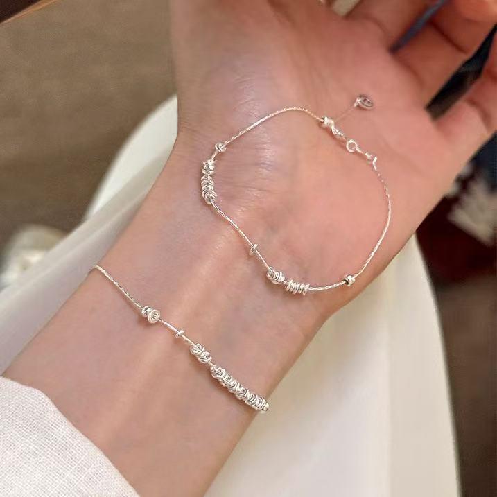 Silver Flying Disc Bead Bracelet: Elegant Korean Style with Versatile Design