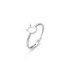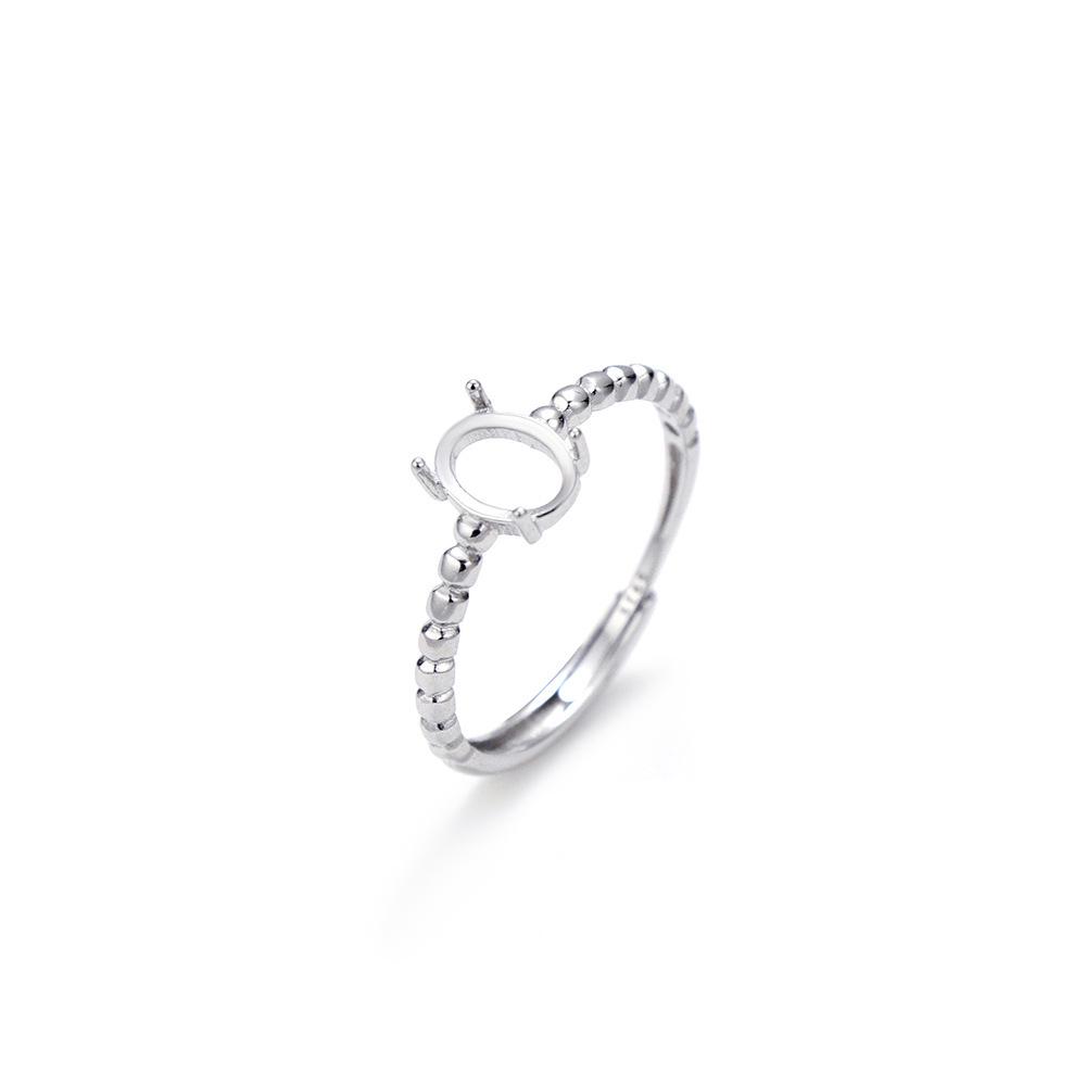 S925 Sterling Silver White Gold-Plated Adjustable Egg-Shaped Ring Base In Prong Setting, Exquisite Light Luxury Design.