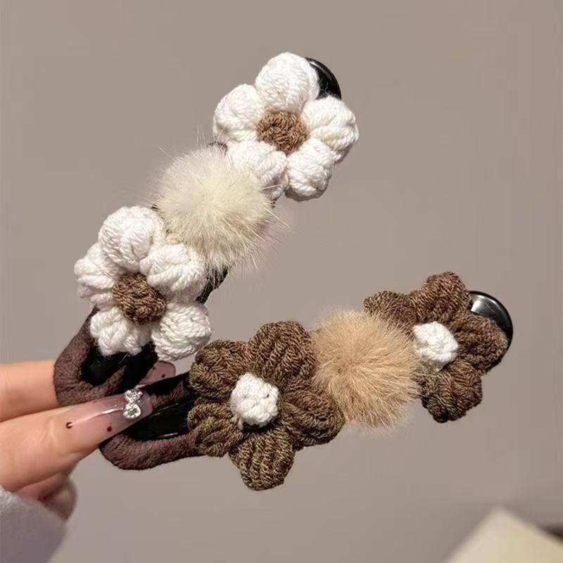 Autumn-Winter Milk Coffee Knitted Floral Hair Clip for Half Updo - Elegant Headwear Accessory