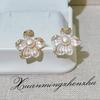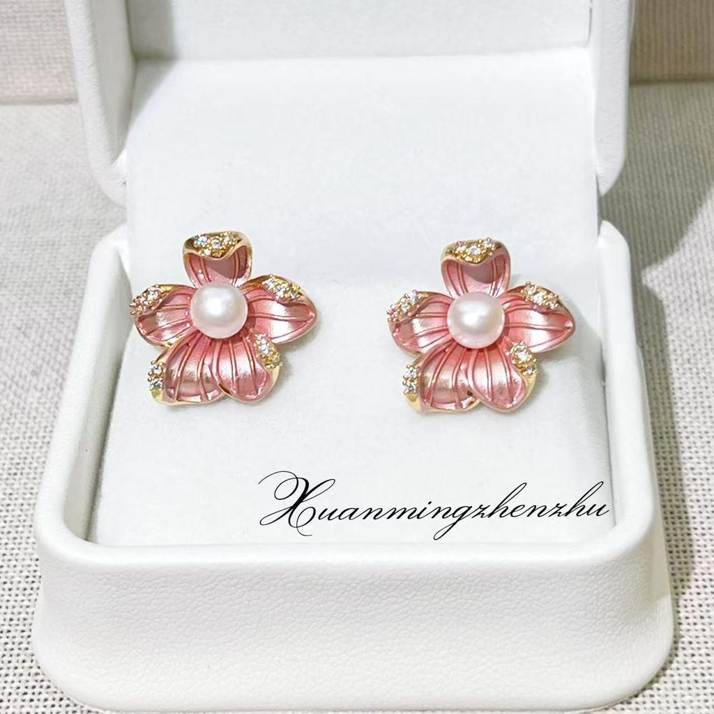 Natural Freshwater Pearl Earrings with 18K Gold Plated Frosted Flower Design and S925 Sterling Silver Needle