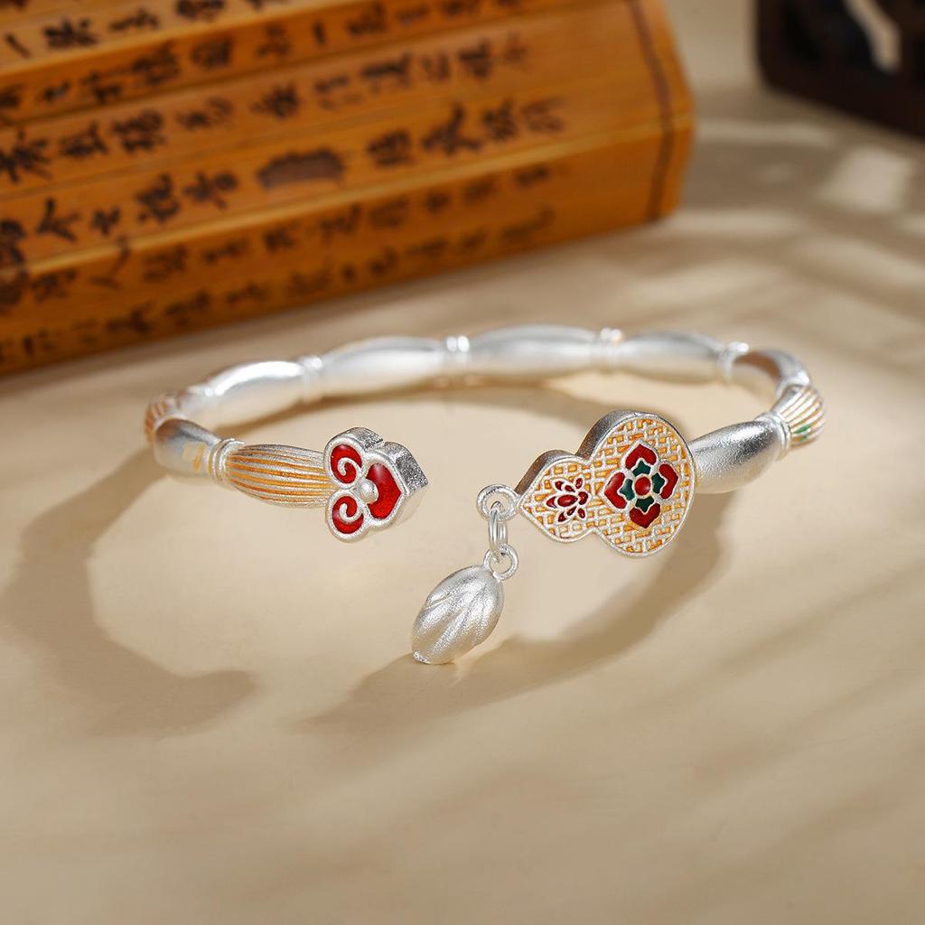 Douyin Trend Filigree Cloisonné Ruyi Gourd Bangle: High-End Chinese Court Style Open Bracelet