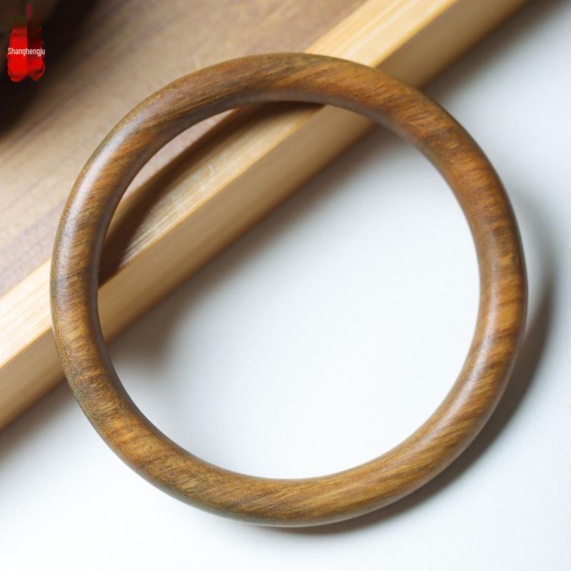 Ethnic Style Wenwan Jewelry - Blood Sandalwood, Green Sandalwood, Ebony, Rosewood, and Agarwood Thin Bangle Bracelet (0.8 Round Bar).
