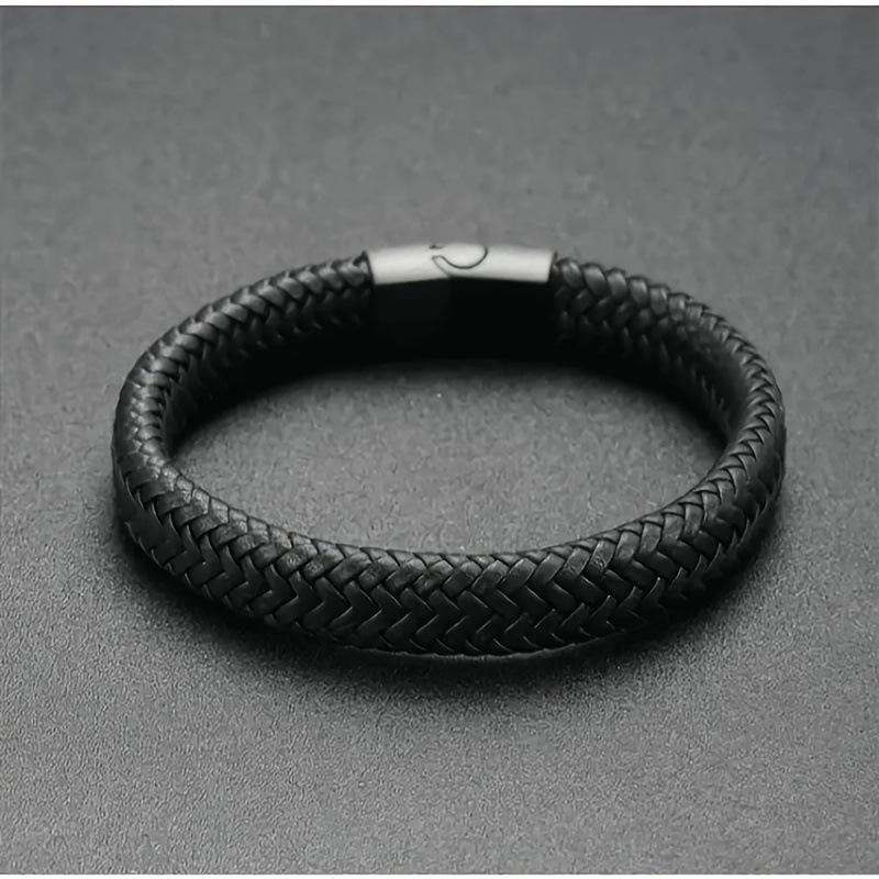 Tide Personality Black Leather Fish Scale Men's Bracelet - Vintage Punk Bangle