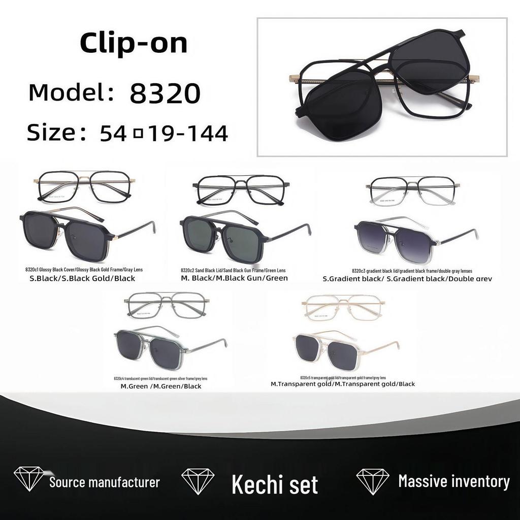 8320 Aviator Style Magnetic Clip-on Myopia Glasses with Polarized Sunglasses
