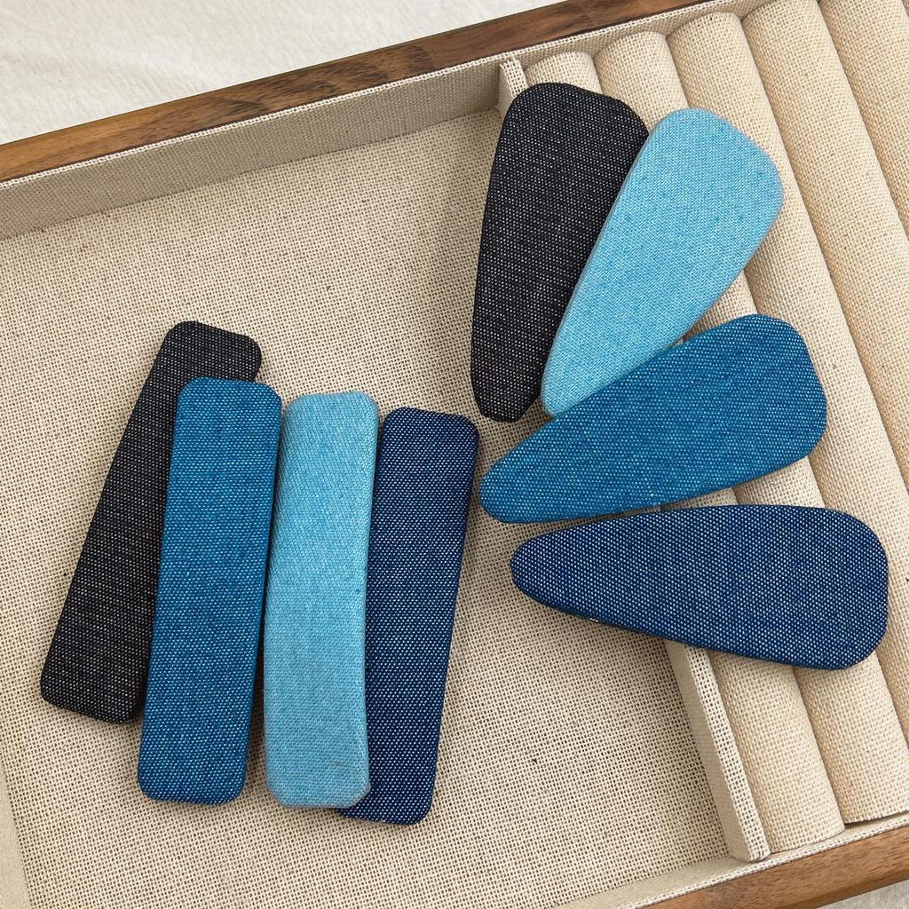 Versatile Denim Blue Teardrop Snap Hair Clip for Frizzy Hair and Bangs - Retro Hair Accessory for Women
