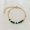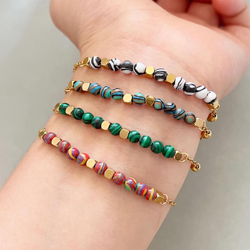 European & American Retro Malachite Sugar Cube Bracelet, 18K Gold Electroplated Stainless Steel Lux Beaded Women's Bracelet