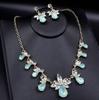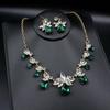 Emerald Green Geometric Necklace & Earring Set with Temperament Ear Hooks and Trendy Clavicle Chain.