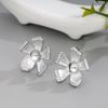 Korean-Style Pearl Stud Earrings, Oil Drop Begonia Flower, Gold-Plated Copper, Fashionably Versatile