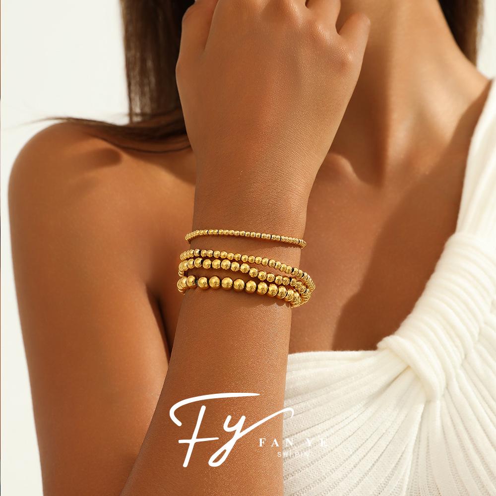 Elegant Gold Beaded Stainless Steel Bracelet for Women - High-End Minimalist Design
