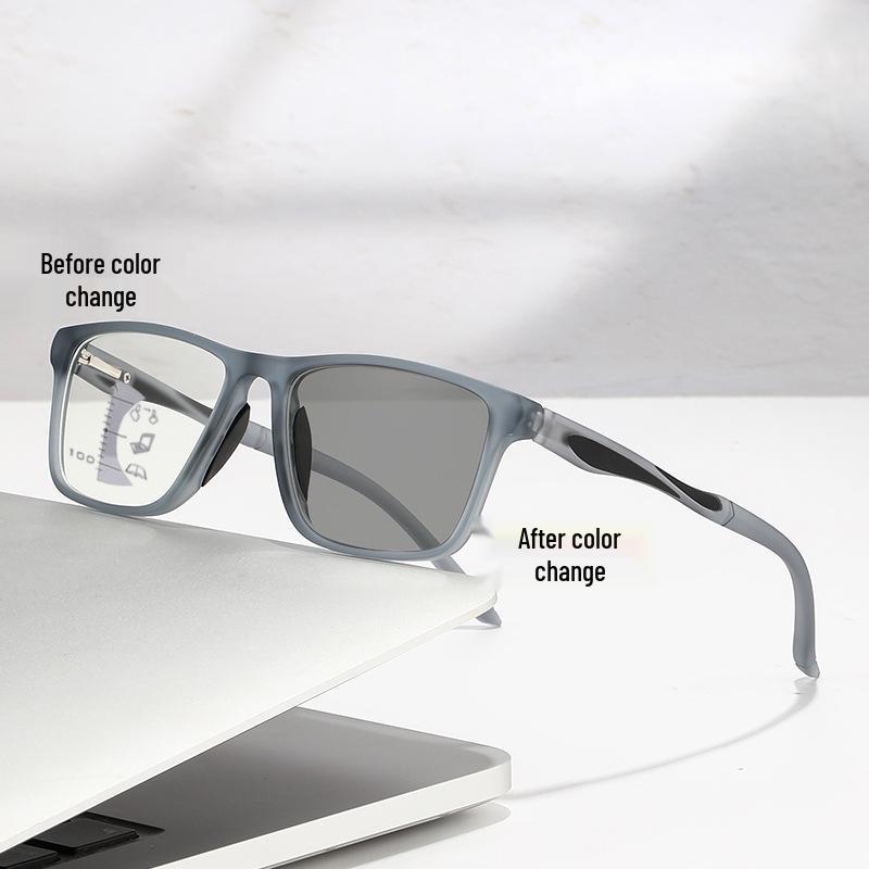 Photochromic Multifocal Anti-Blue Light Reading Glasses for Distance and Near Vision, Ideal for Presbyopia In Middle-Aged and Elderly Users.