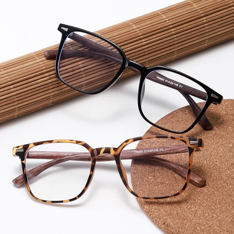 Literary Retro Wood Grain Large Frame Glasses, Anti-Radiation & Blue Light, TR Ultralight, Trendy Unisex High-End M03.