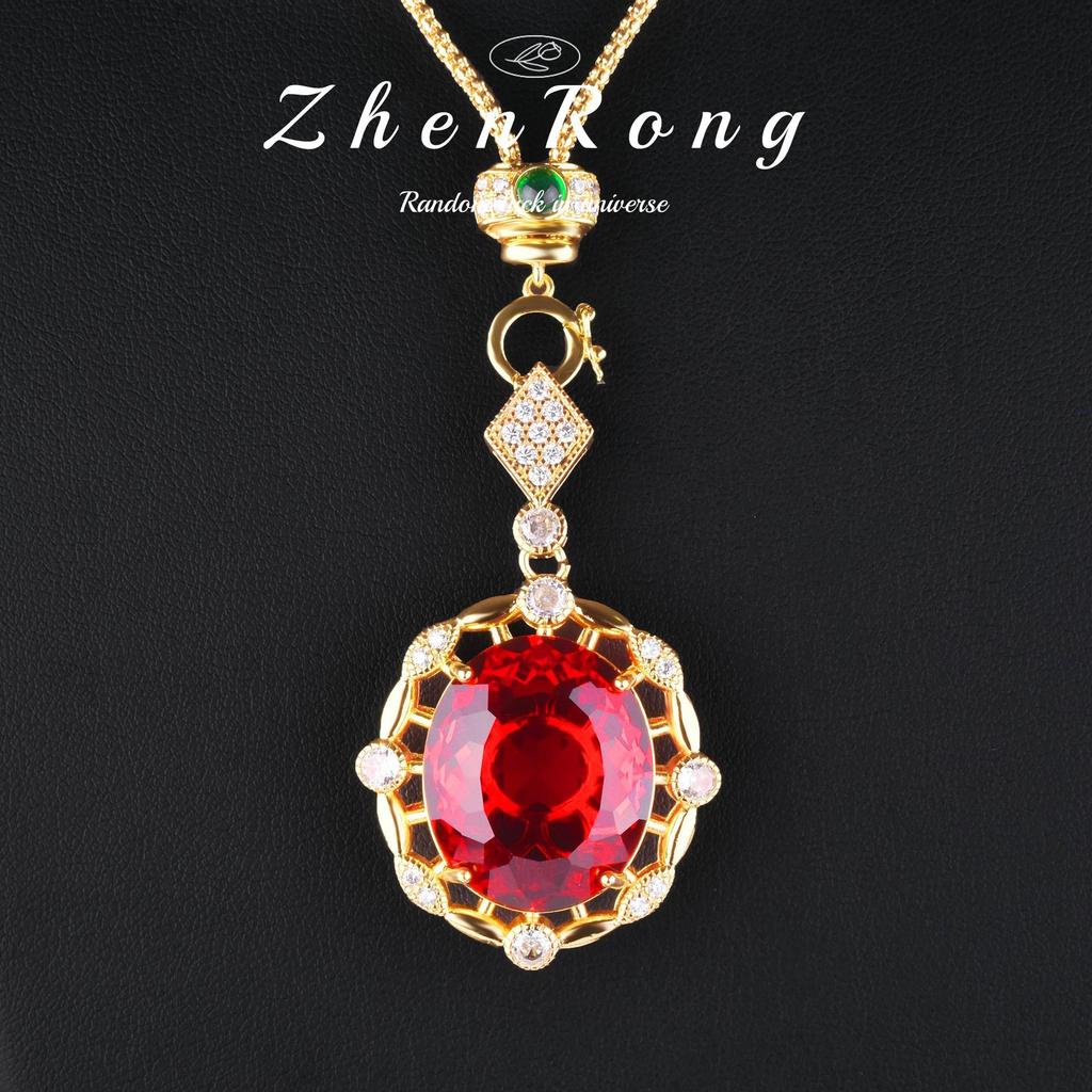 European & American Style Pigeon Blood Red Simulated Ruby Openwork Pendant with 18K Gold-Plated Emerald Aquamarine Necklace for Women