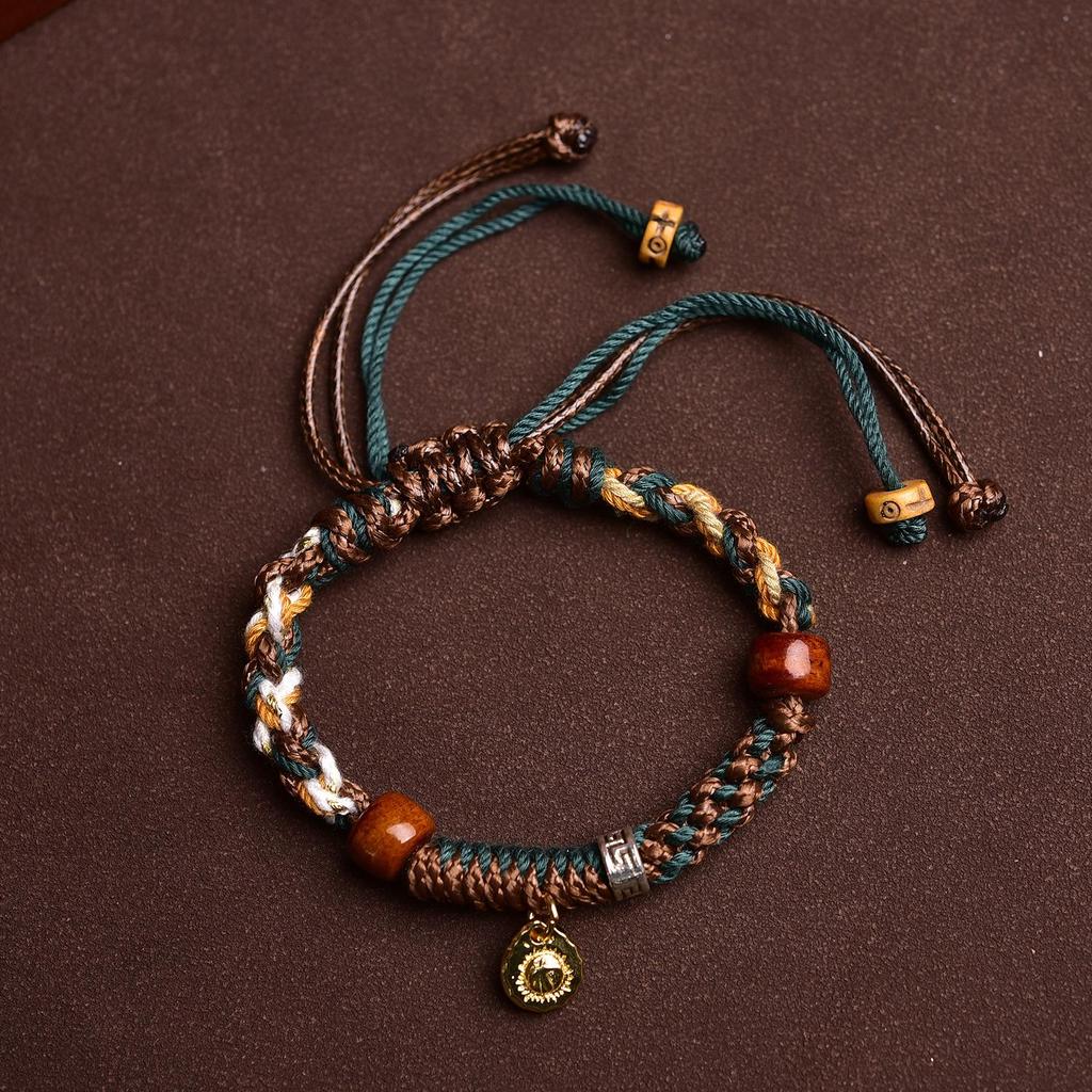 Colorful Tibetan Ethnic Style Adjustable Handmade Leather Cord Bracelet for Couples