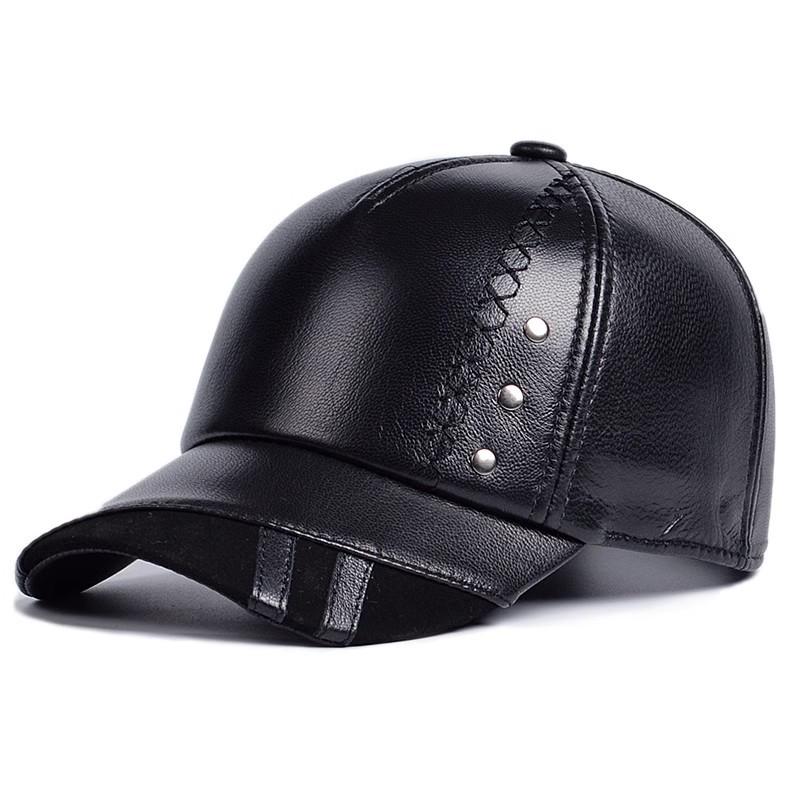 Men's Trendy Sheepskin Leather Baseball Cap: Autumn/Winter Outdoor Casual Duckbill Hat for Middle-Aged & Elderly