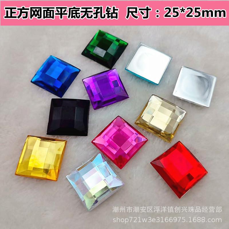 Acrylic Colored Square Mesh Flatback Rhinestones 25x25mm Decorative Stick-on Gems