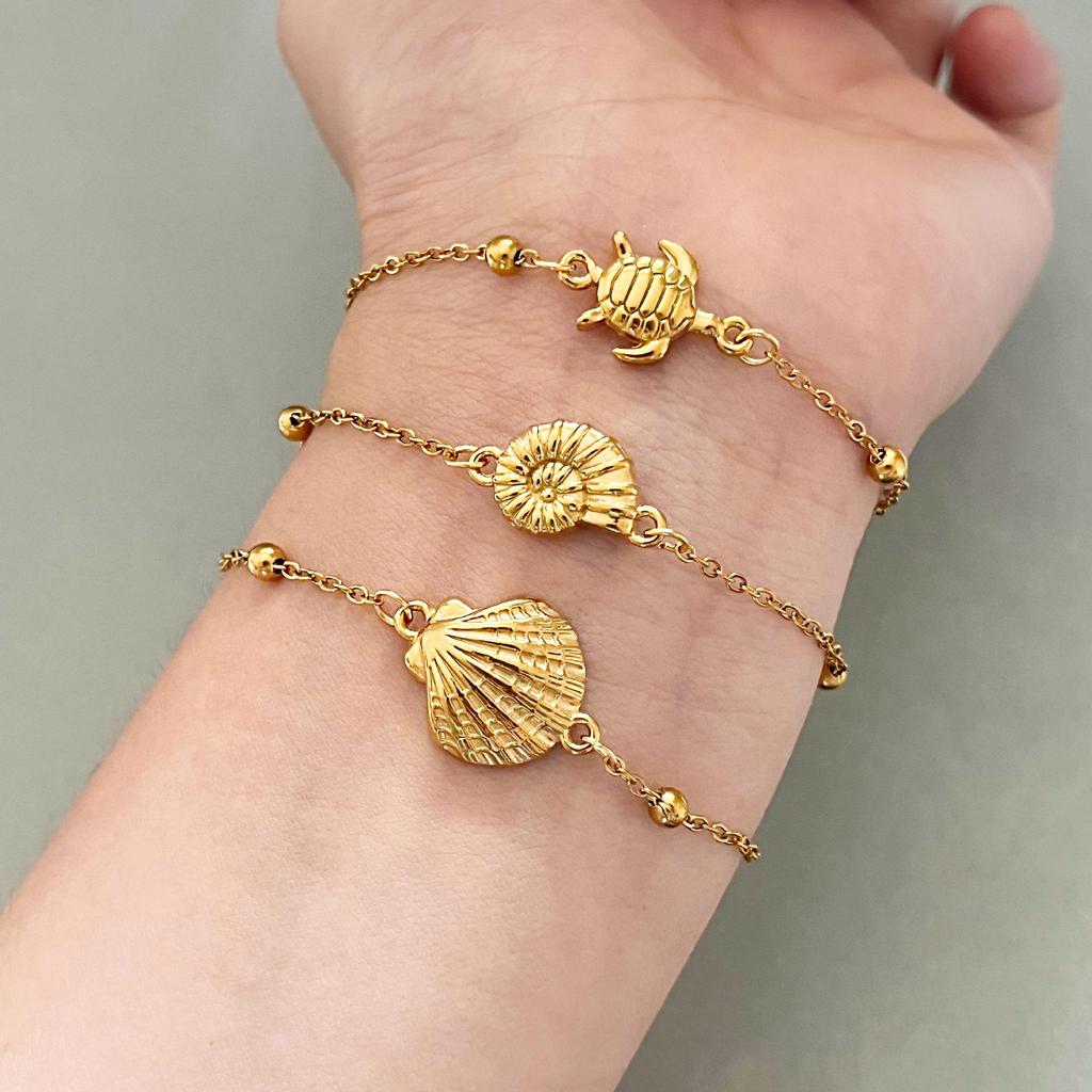 Retro Ocean Style Seashell & Turtle Stainless Steel Bracelet - European & American Fashion
