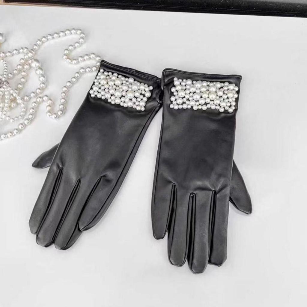 Women's Winter Fleece-Lined Leather Gloves with Bow Decoration - Warm, Cold-Proof Outdoor Cycling Gloves