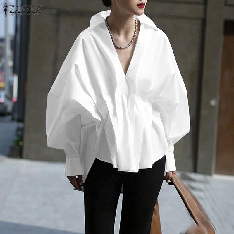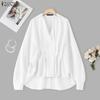 ZANZEA Women Casual Lapel Neck Long Sleeve Loose Pleating Irregular Blouse