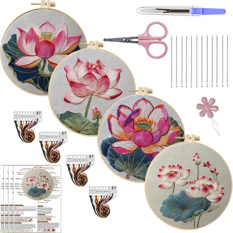 1pc Lotus Pattern DIY Embroidery Kit for Beginners