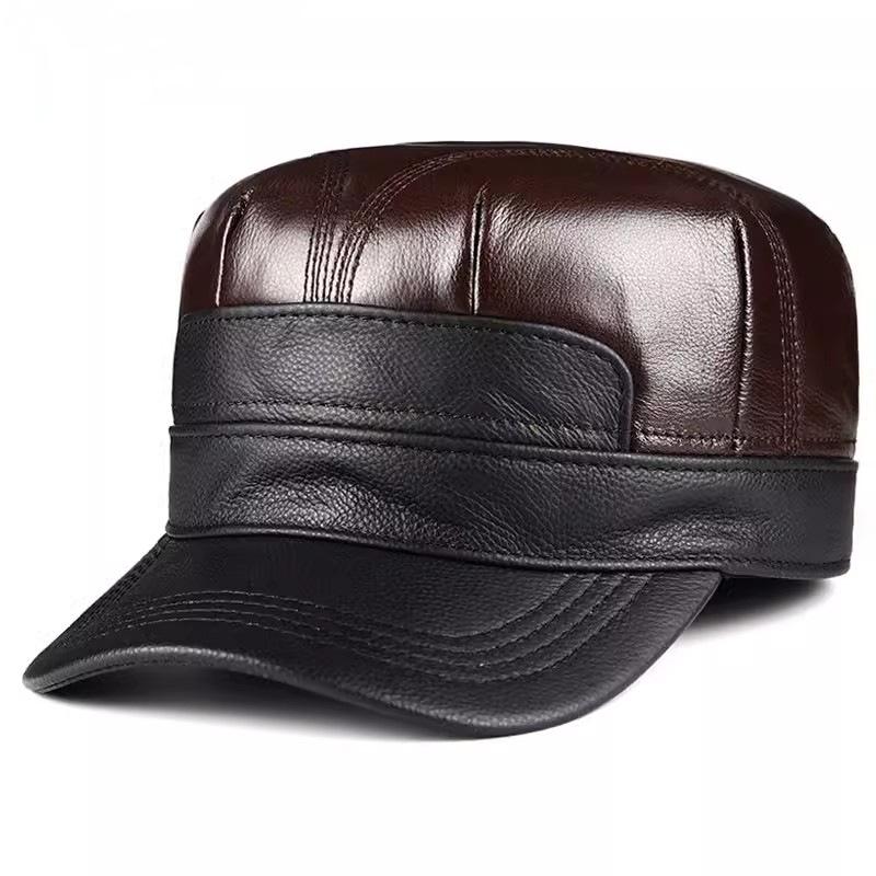 Men's Genuine Leather Flat Top Duckbill Cap - Autumn/Winter Casual Cowhide Hat for Middle-Aged and Older Adults