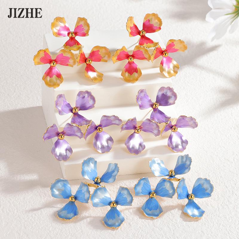 Korean Trendy Colorful Drip Oil Flower Earrings - Bold, Creative Dopamine Titanium Steel Studs