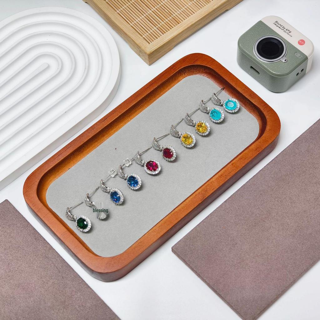 Gusen Jewelry Cross-Border Oval Earrings - European & American Style with Simple Color Gem Zirconia for Women