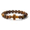 Natural Tiger Eye, Green Aventurine, Turquoise, and Malachite Cross Beaded Bracelet