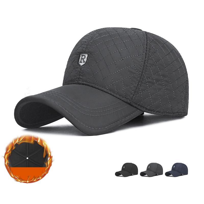 Winter Thick Embroidered Rhomboid Letter Cotton Cap Men's Cold-Proof Cap Middle-Aged and Elderly Warm Outdoor Ear Protection Cap