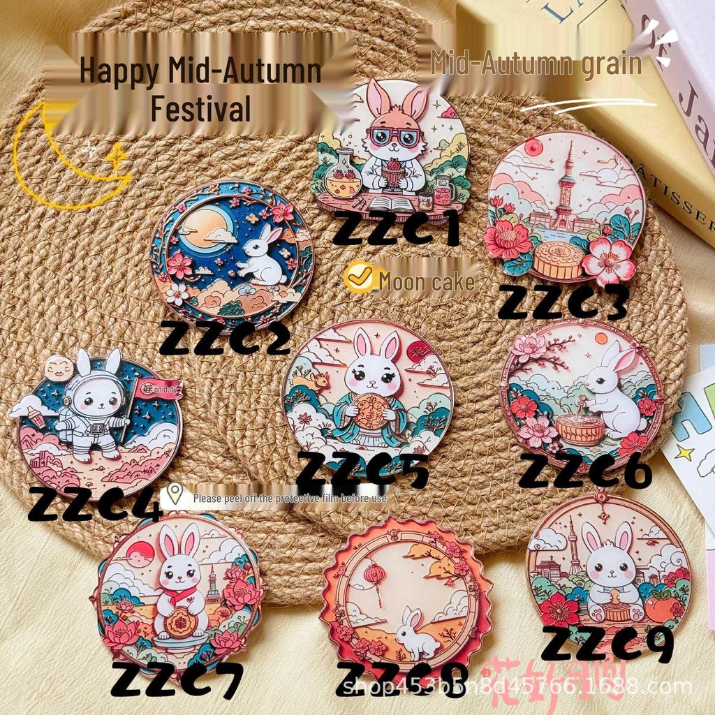 Acrylic Brooch: Rabbit & Mooncake Mid-Autumn Jewelry Pin for Clothes & Bags
