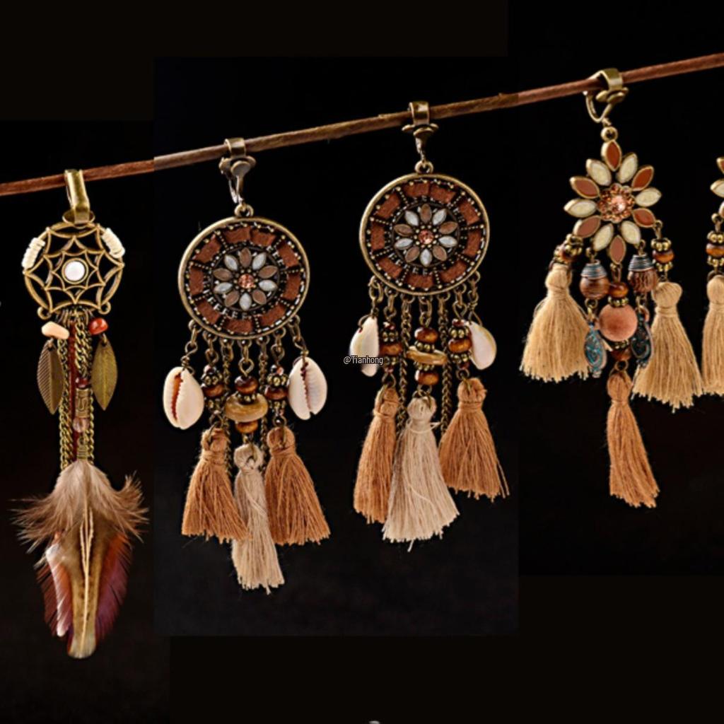 Yunnan Ethnic Bohemian Feather Earrings - Exaggerated No-Pierce Clips for Women