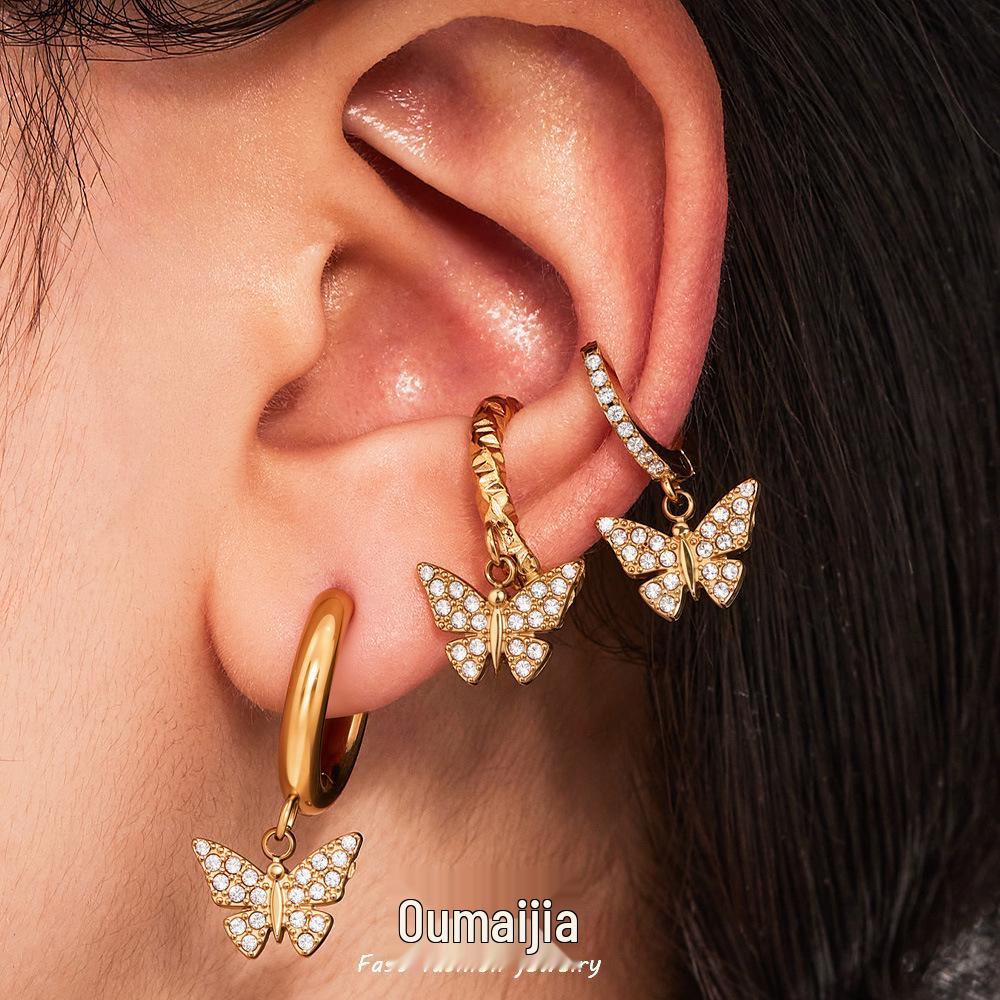 Oumika 18K Gold-Plated Butterfly & Diamond Earrings for Women