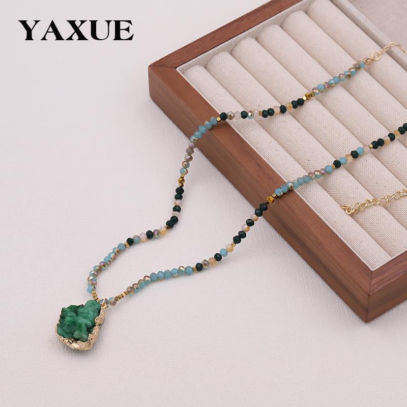 Multicolor Stone Beaded Pendant Necklace - Light Luxury Sweater Chain Jewelry