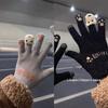 Women's Cute Winter Touchscreen Wool Knit Gloves - Velvet Lined, Cold-Proof for Cycling and Daily Wear