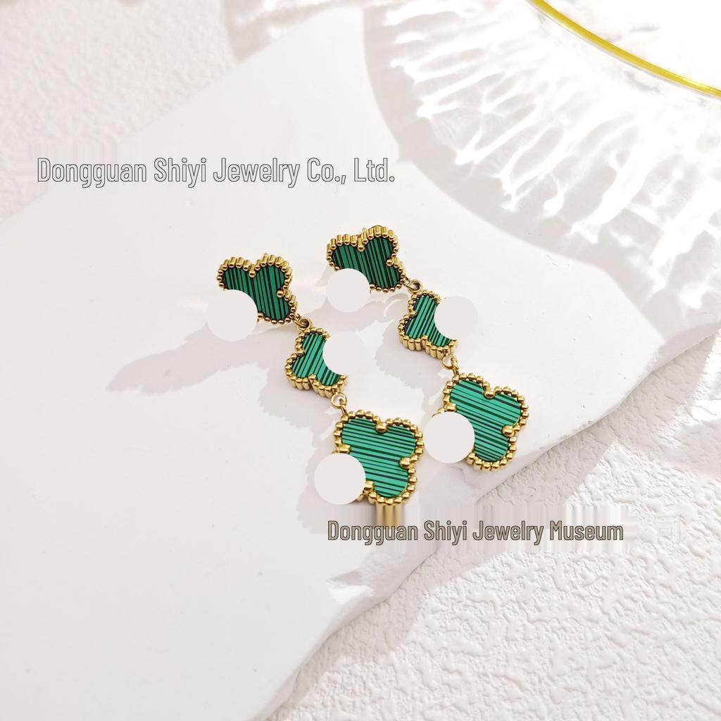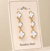 High-End Four-Leaf Clover Tassel Stud Earrings - Stainless Steel, Light Luxury Design