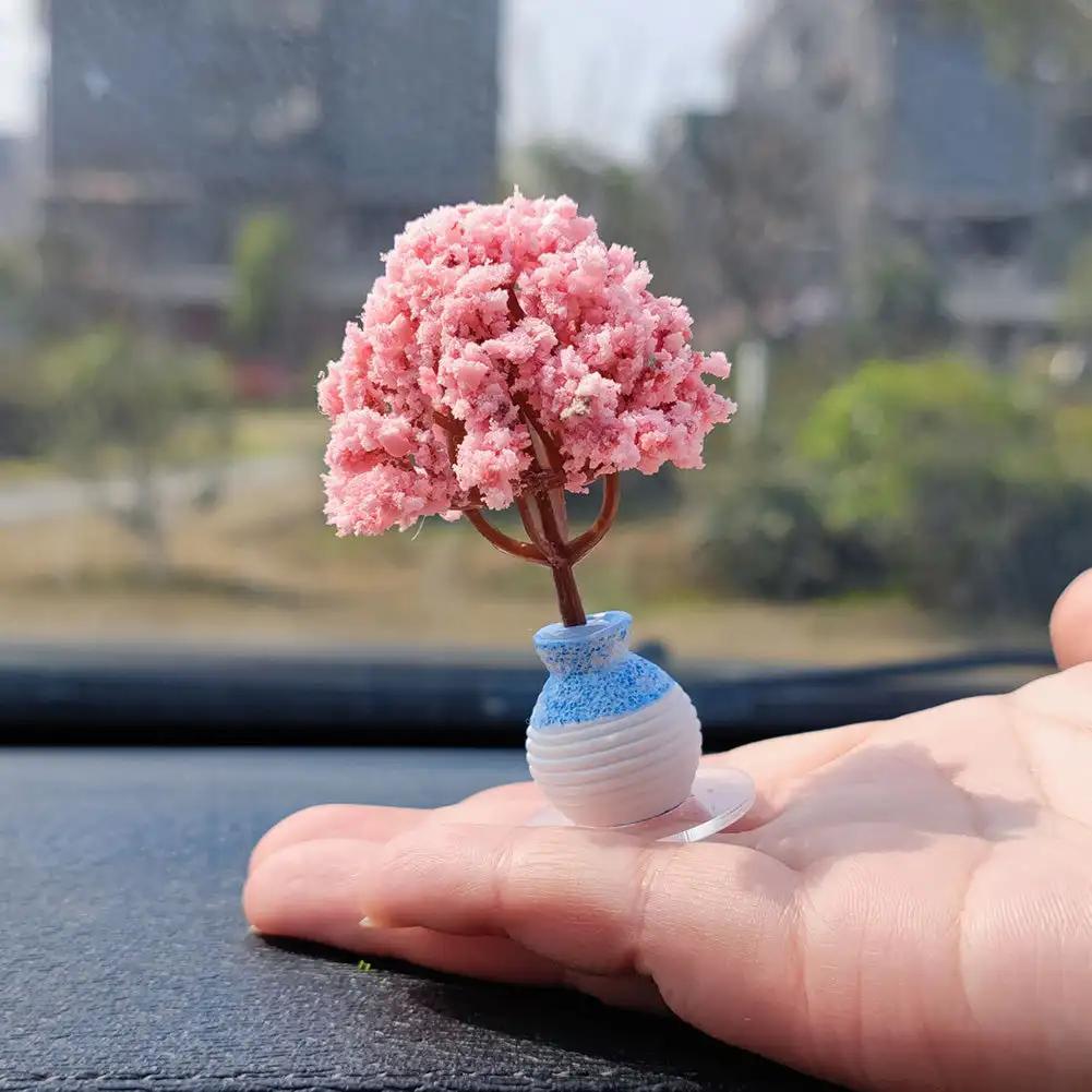 Car Mini Tree Center Console Car Mounted Green Plant Accessories Simulated Flower Decoration For Girls Gift Interior Decorations