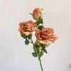 1Pc French Artificial Flower Single Stem 3-Headed Burnt Edge Rose for Wedding Home Decoration Holiday Decoration Valentine's Day Gift Birthday Gift