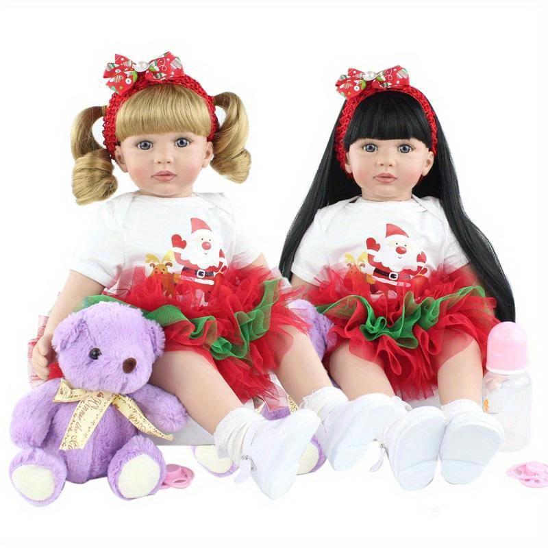 BZDOLL 60cm Reborn Baby Doll Soft Vinyl Princess Toddler Girl Toys 24inch Lovely Bebe Dolls with Christmas Dress Nice Gifts for Girls and Children
