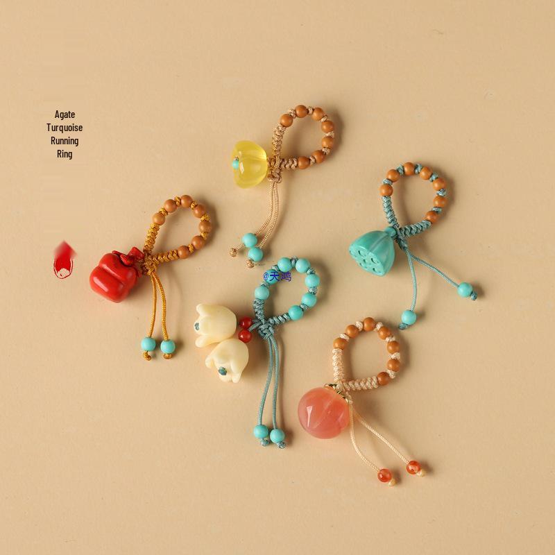 Agate Turquoise Pendant: Lotus Seed Pod & Persimmon Charm with Buddha Beads and Teardrop Running Ring.