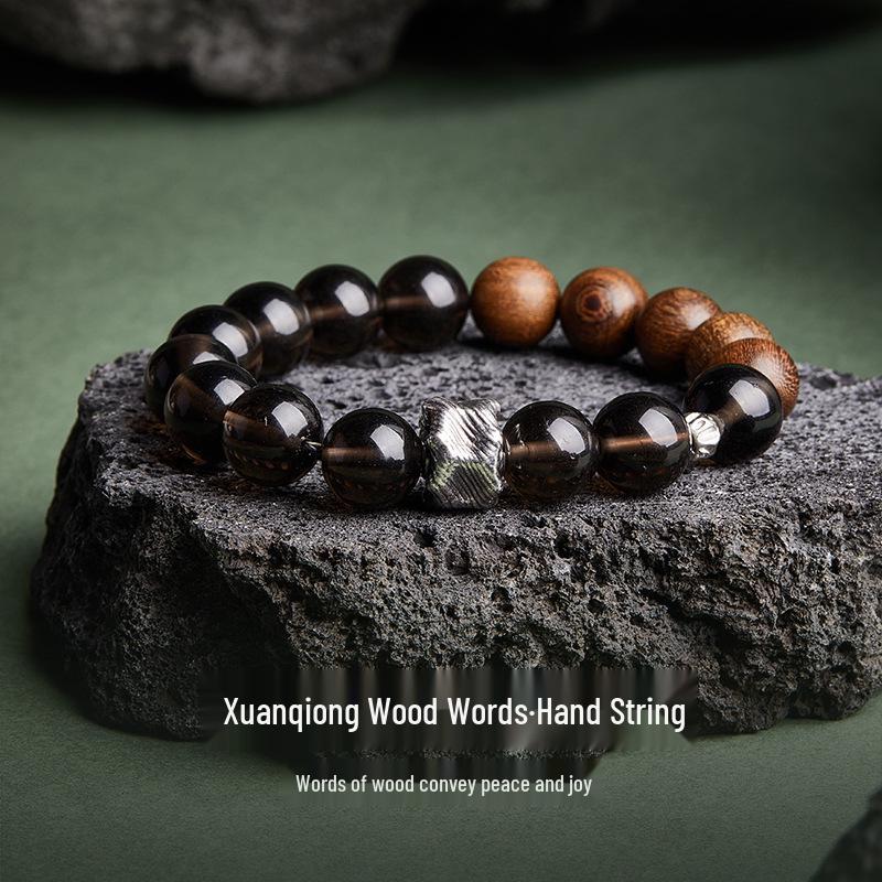 Men's Vintage S925 Sterling Silver Gold Sandalwood Icy Obsidian Bracelet - High-End Gift for Boyfriend
