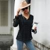 Fashionable and Casual Temperament Early Fall Tops Thin Section Loose V-neck Long-sleeved Black Shirt