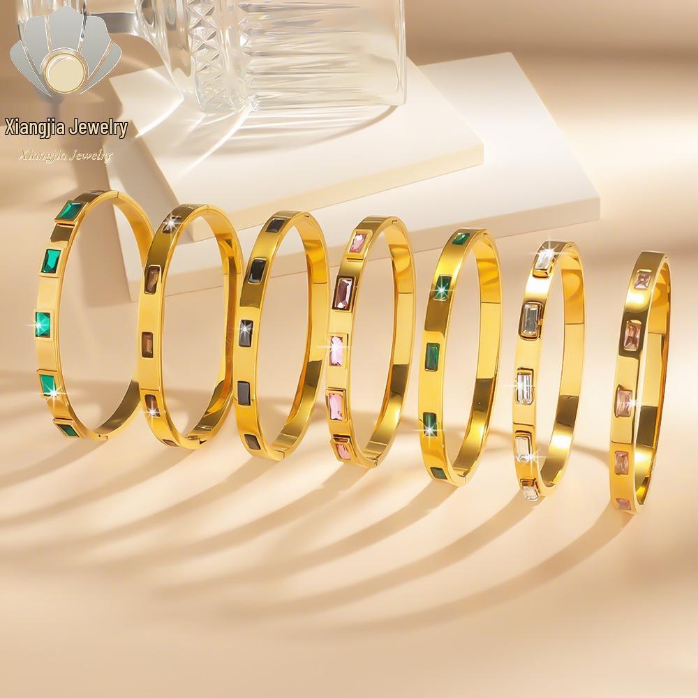 Emerald Square Diamond Titanium Steel Star Bangle - Luxury European/American Bracelet for Women