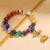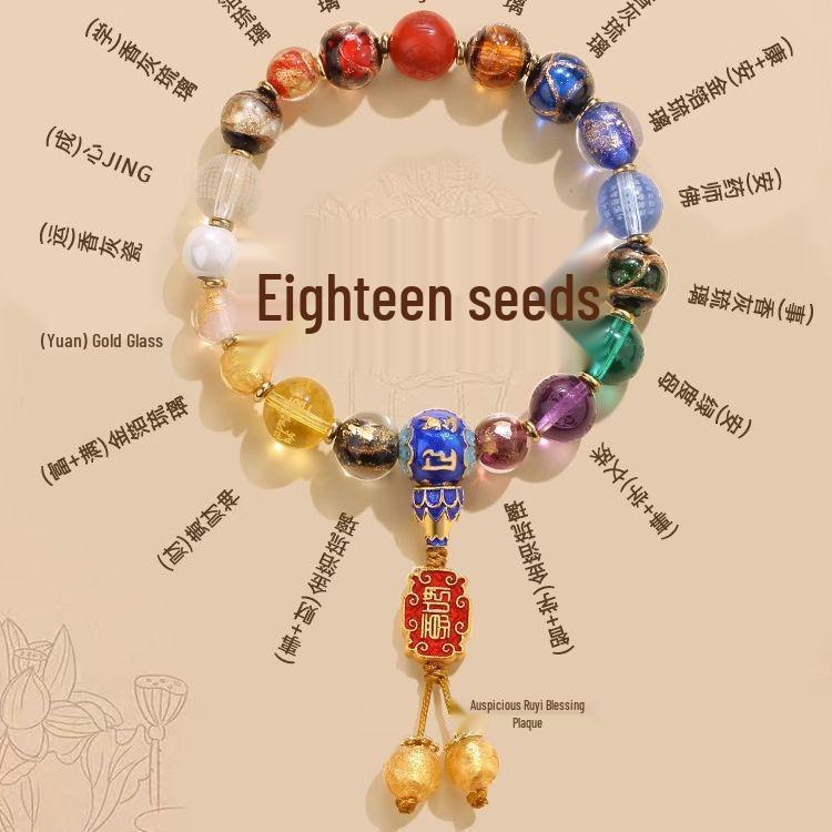 Buddhist Eighteen Bead Hand String with Blessing Tag and Vajra Pestle, Incense Ash Glaze Finish