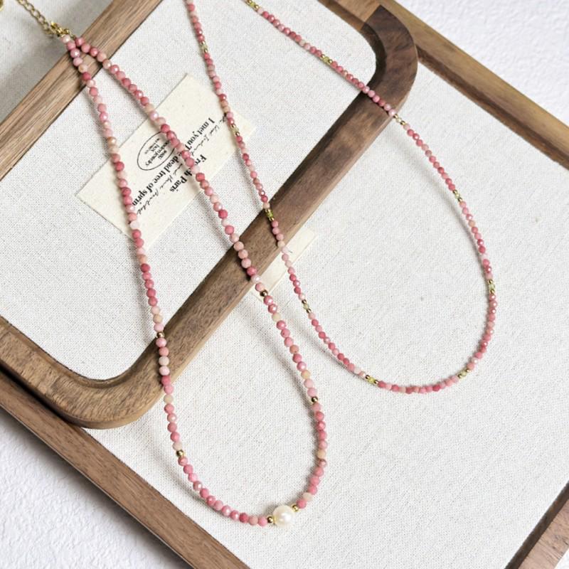 French Red Rhodonite Crystal Necklace - Versatile Layered Clavicle Chain In Titanium Steel