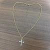 18K Gold Figaro Necklace with Zircon Cross - Non-Fading Stainless Steel Chain for Women