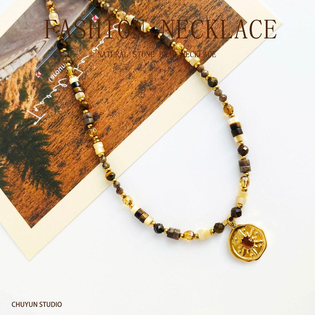 Sunset 2025 Early Autumn Natural Stone Beaded Necklace - High-End Niche Clavicle Chain